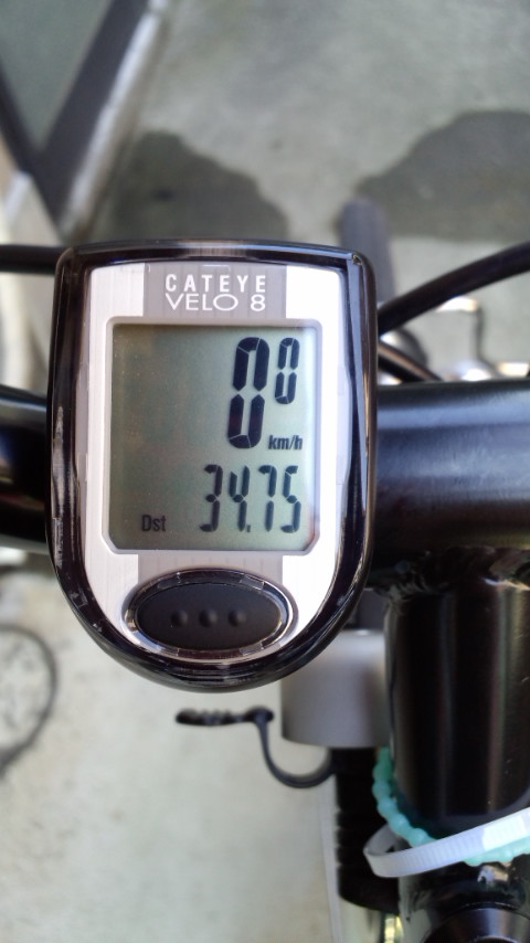 走行距離は34.7kmでした、距離も時間も多摩サイと同じくらいだな。