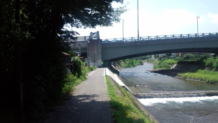 夏らしい天気の中「高幡橋」から浅川サイクリングロードにIN