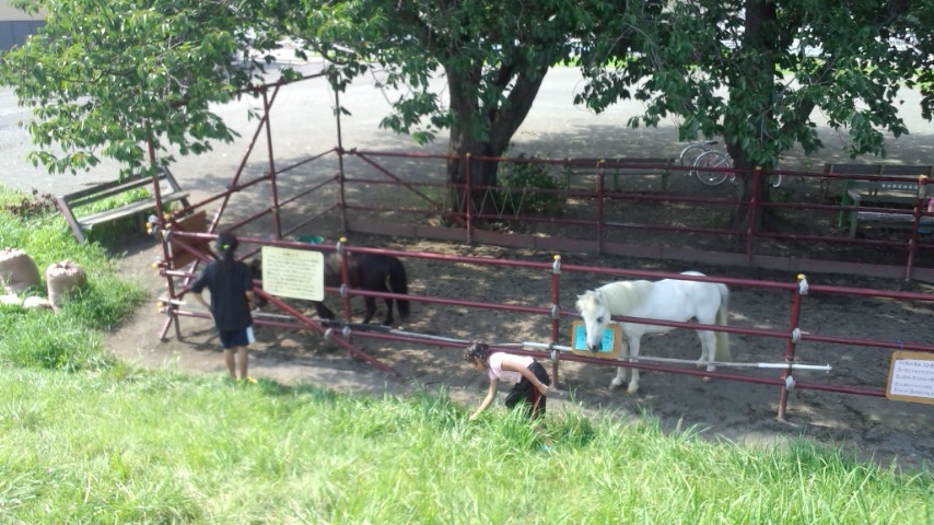 「一番橋」を越えた左岸(本来は右岸が推奨ロードです)、日野市民プールの近くの駒形公園にいる馬