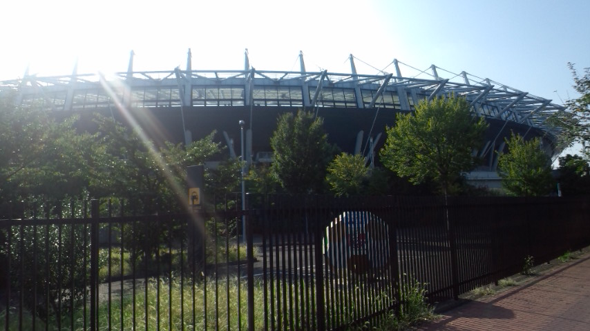 で、味の素スタジアム(東京スタジアム)の横を通る広ーい道を快適に走り