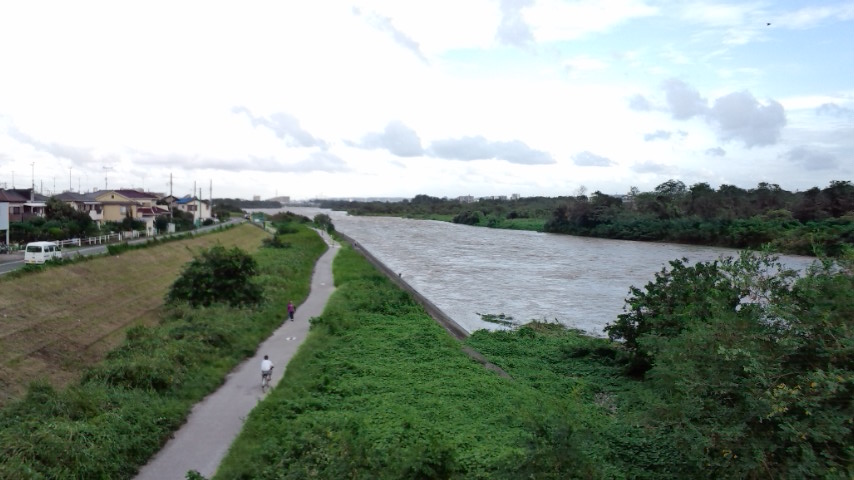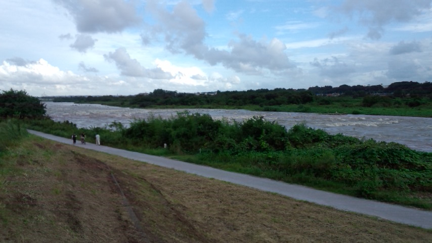 土手の下を走る(多摩大橋をくぐる)道は、水没はしなかったようです。