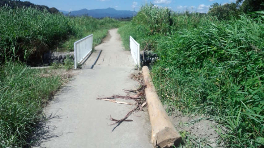 とはいうものの明らかに河原部分を走る所は、水没した後があり、流木とか砂(泥)が散乱している。まぁクロスバイクなら平気で走れると思う。