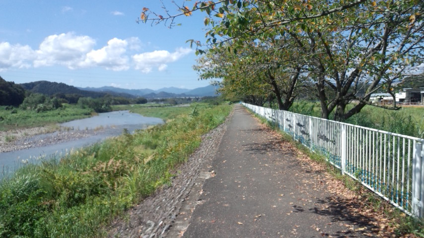 先ごろの台風12号で、サイクリングロードが何ヶ所か水没したとの記事を見ていたのですが水量も普通に戻っているし、水の色も普通に戻ってる。