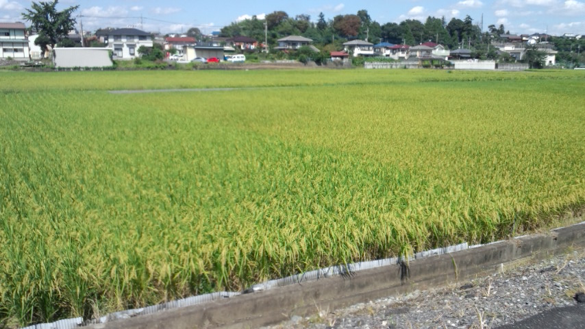「実るほど 頭を垂れる稲穂かな」まだ稲刈りには早いでしょうか。