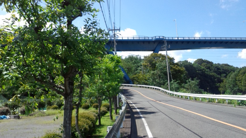 「坂登って↑この橋渡れば五日市街道ですよ」と山田大橋を差しながら答える。