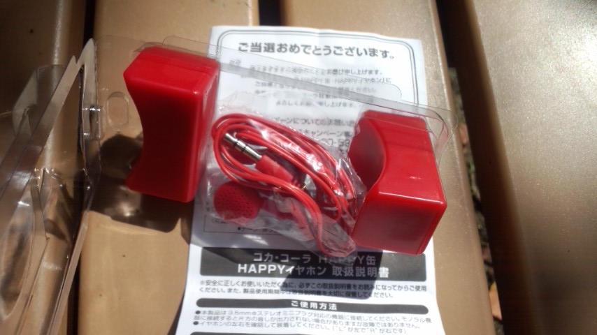 中身は「HAPPYイヤホン」でした、調べたら他にも時計とかスピーカーとかあるみたい。間違いなくイヤホンは末等でしょう(泣)