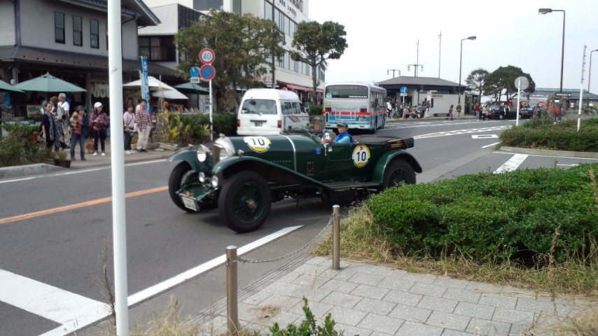 今日はスポーツクラシックカーによるラリーイベント「La Festa Autunno 2011」の最終日でちょうど江ノ島を走るタイミングだったようです。
