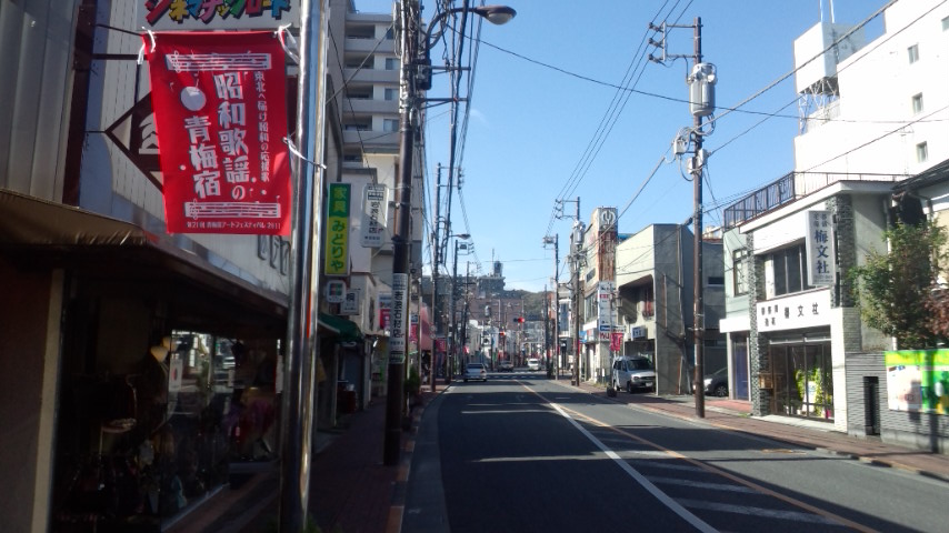 青梅の商店街に「昭和歌謡の青梅宿」という赤い旗がヒラヒラと揺れていました。
