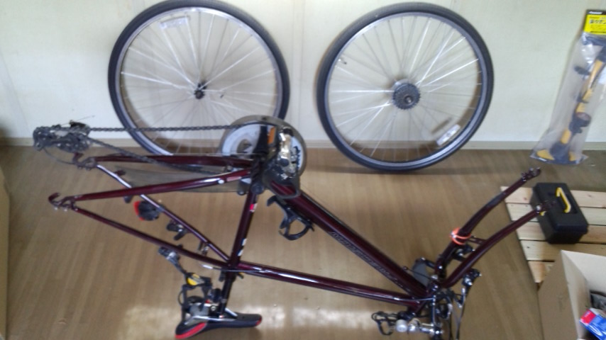 ほぼ物置で普段使っていない部屋(土足OK)に自転車を持ち込み作業しました。