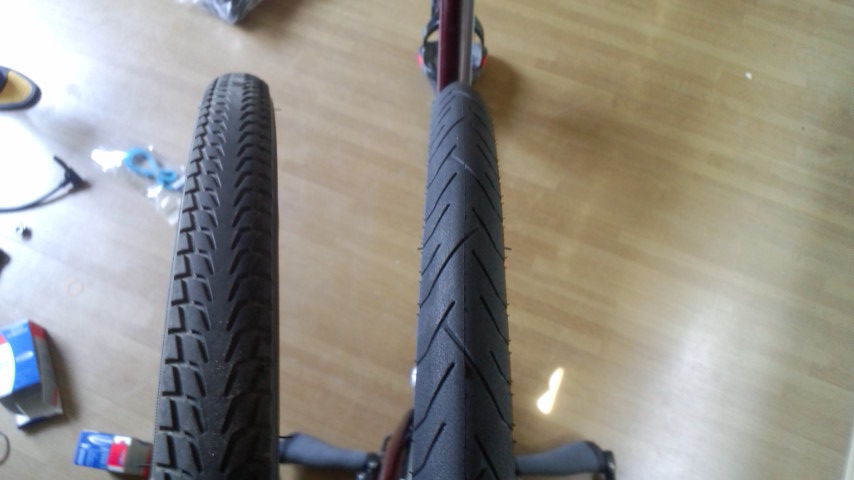 リブモPTですか,良いタイヤですよね。私は費用対効果でリブモSの35Cを履かせていたことがありましたが,それでもデフォタイヤよりも全然快適でしたです。