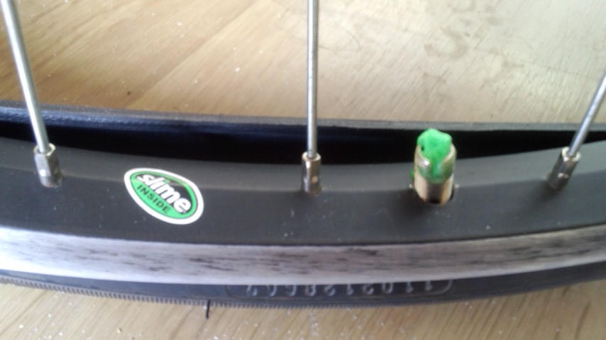 このチューブは仏式なので本来は英式用ホイールに使用するにはスペーサーが必要なのですが、