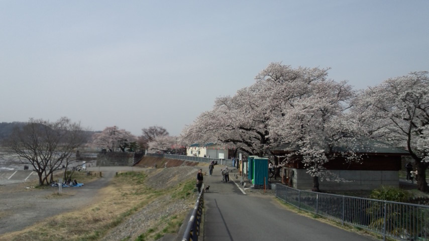 羽村堰に到着、桜満開で人多すぎ状態(汗)
