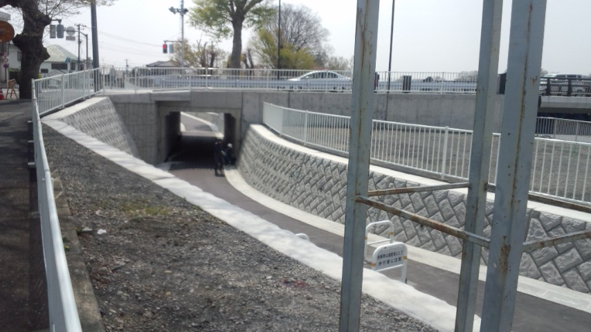 多摩川サイクリングロード(多摩サイ)上流で唯一アンダーパスが無く信号があった福生の「永田橋」ですが工事が完成間近です。