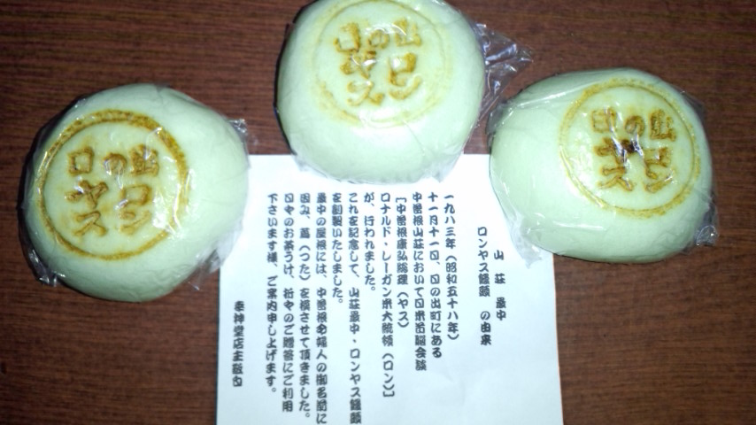 つるつる温泉入口交差点の近く、ふと目に入った和菓子屋さんの看板に「ロンヤス饅頭」との文字(写真では見づらい)を発見!