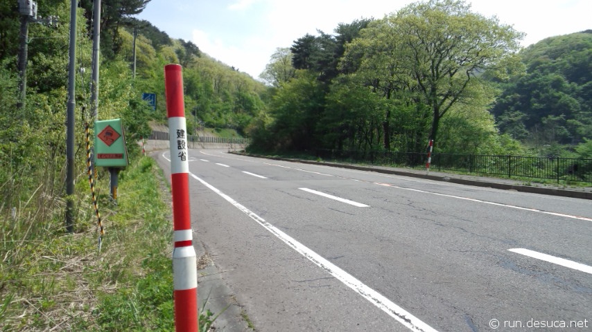 ラスボスである中山峠を上ります、降雪地の特徴である「赤白ポール(降雪時に路肩を示すもの)」と滑り止めの砂入れもあります。