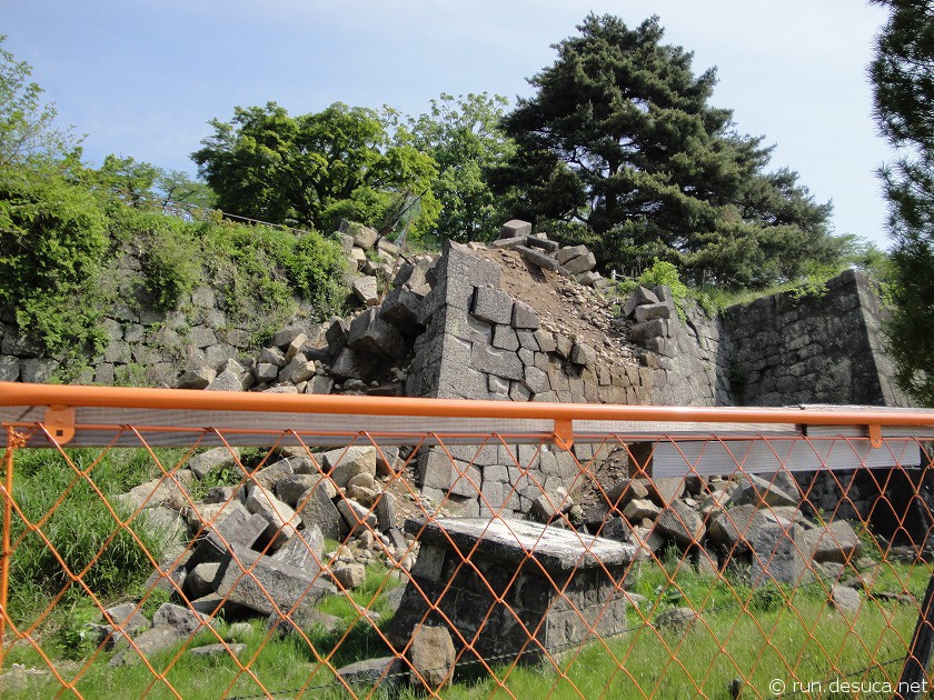 どうやら大震災で石垣が倒壊し、天守を含む周辺は立ち入り禁止になっているようです・・