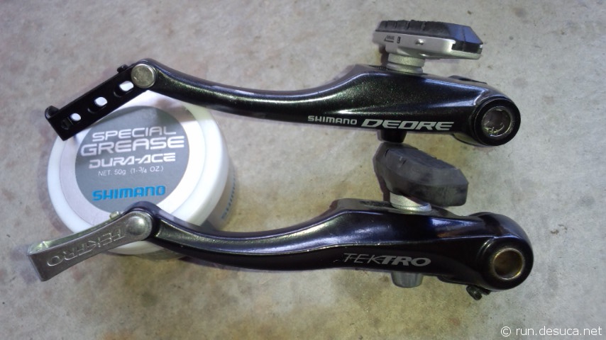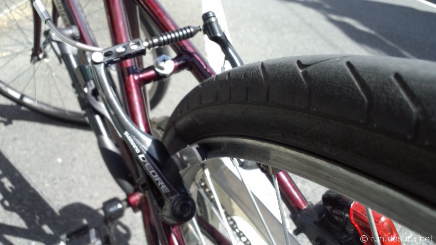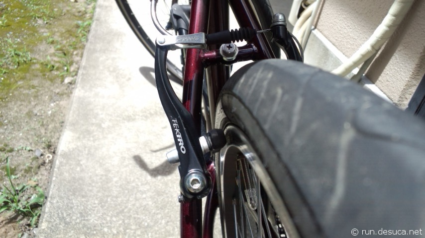 標準で付いていたテクトロのブレーキは細かい調整が効かなくて、調整ネジでの可動範囲がかなり大雑把な感じでしたから、片効きや音鳴きを消すのも大変。