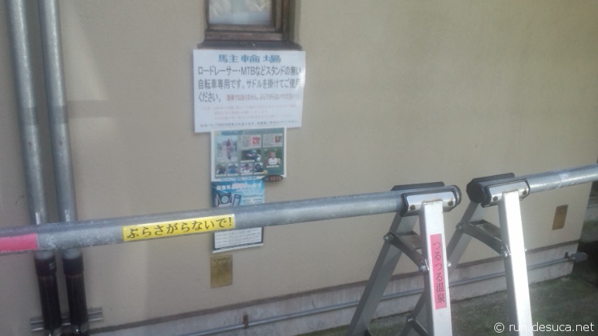 温泉利用者にはスタンドの無いロードバイクでもOKな駐輪場もありますし、中にはレストランもあります。