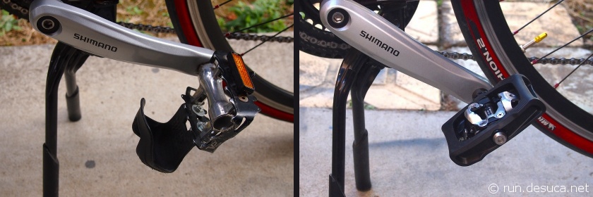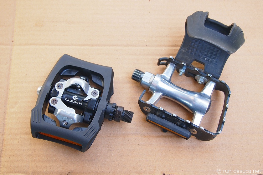 これまでは純正ペダルを交換して、フラットペダル&ハーフクリップに、そして普通のスニーカーで乗っていました。
